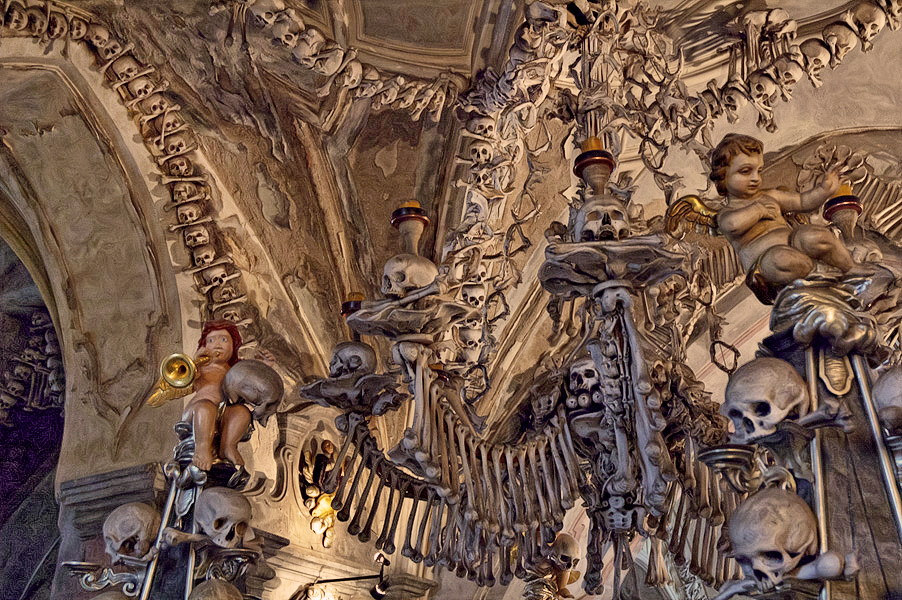 После посещения Кутной Горы, нас ждет самое мистическое место нашего экскурсионного маршрута — Костница (или Костехранилище). Можете ли вы представить себе более необычный элемент интерьера, чем люстра, сделанная из человеческих костей, или украшение из человеческой лопатки или тазобедренной кости? Все это Вы сможете увидеть в часовне небольшого поселочка Седлец, находящегося возле Кутной Горы. Убранство часовни сделано из 40 000 человеческих костей. Подробнее о Костнице Вы узнаете во время экскурсии по часовне (цена входных билетов в Костницу не входит в стоитомть экскурсии).