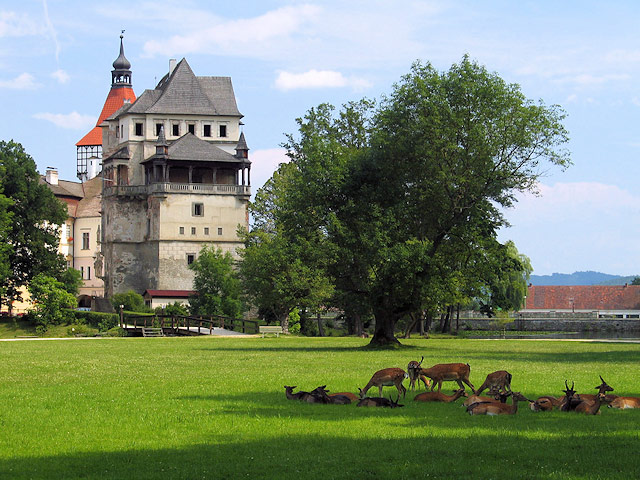 Если Вы путешествуете с детьми или просто любите уютне места с возможностью прикоснуться к природе, то вместо замка Добриш, можно посмотреть средневековый водный замок Блатна на юге Чехии.