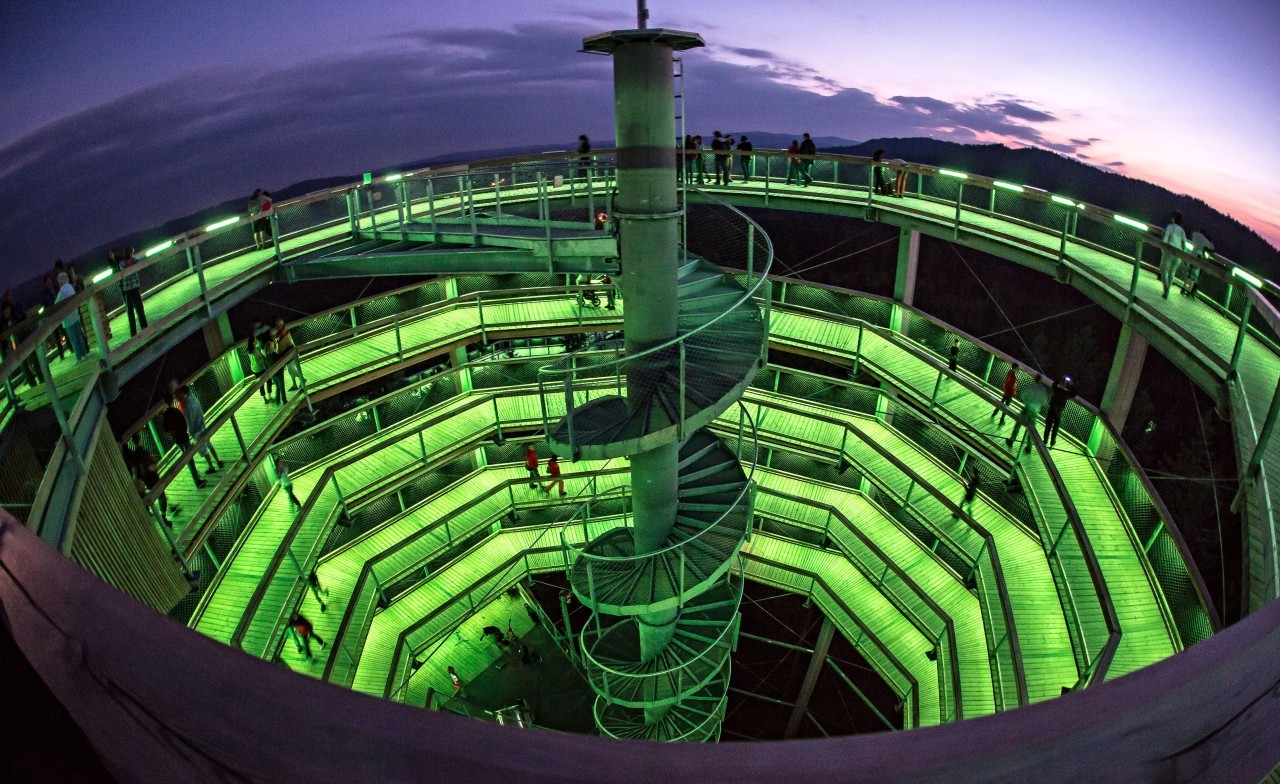 В конце тропы находится 40-метровая смотровая башня, благодаря которой посетители могутполюбоваться видами вершин Альп, части водохранилища Липно, прекрасных окрестностей Шумавы и Новоградских гор. На тропе можно найти 18 «адреналиновых» остановок и самый длинный сухой тобоган в Чешской Республике длиной 52 метра, спускающийся внутри смотровой башни.