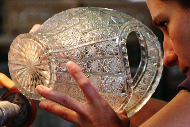 Далее следует процесс грубой шлифовки стекла, контроль качества продукции, нанесение всевозможных рисунков и полировка продукции. Мастера на заводе в городе Нижбор творят чудеса, выпуская хрустальную посуду и вазы, как для массового потребителя, так и по индивидуальным заказам. Продукция завода поставляется в ОАЭ, Россию, США, страны Европы.